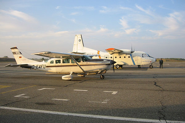 CESSNA 207T operated by FUB in front of INTA's CASA 212 at Francazal airport in Toulouse. Photo credit: EUFAR |